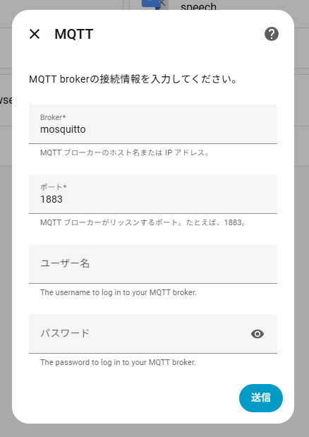 MQTTの接続情報を入力します。