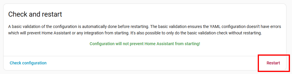 Check and restart の Check configurationをクリックします。